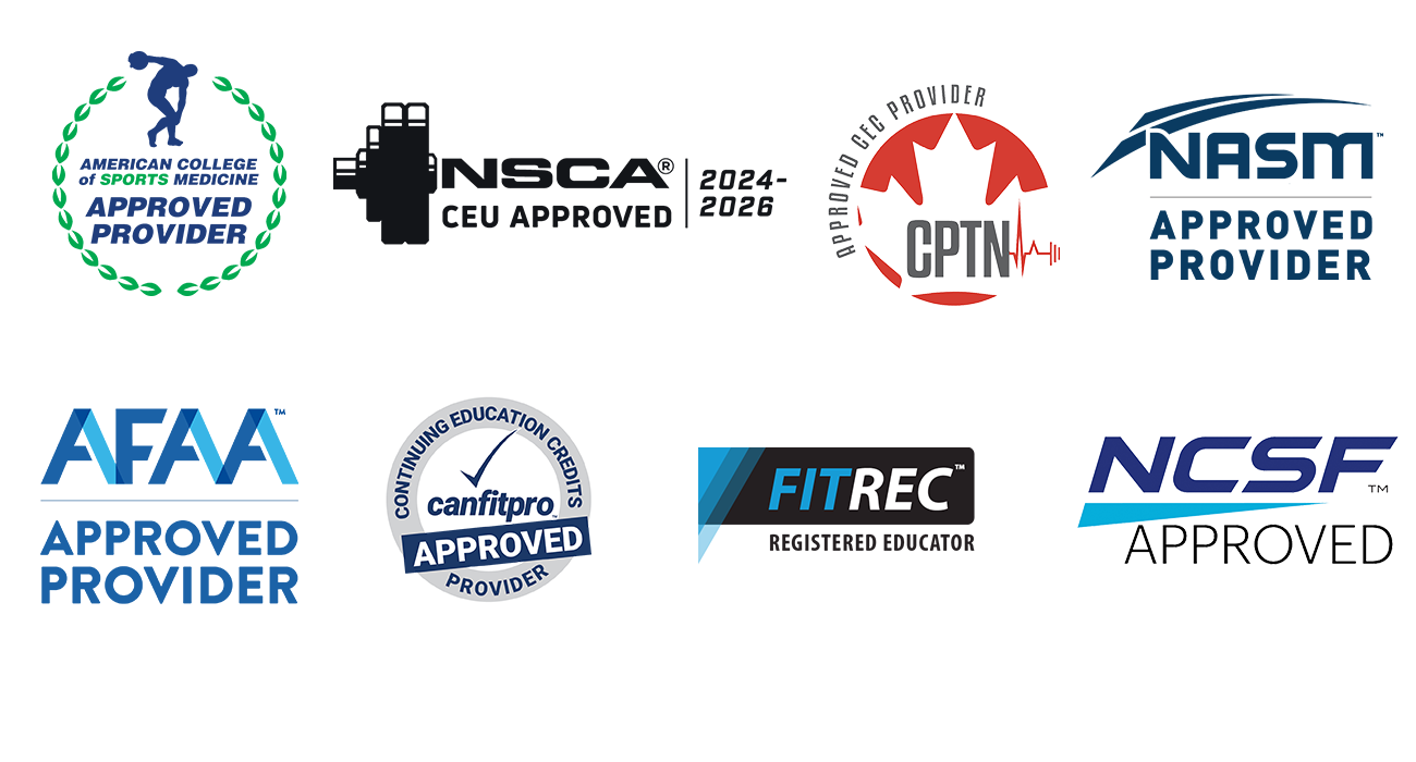 CEC value is NASM (0.9), AFAA (0.9), CPTN (14), NCSF (7), NSCA (1.1), ACSM (15), CANFITPRO (4).